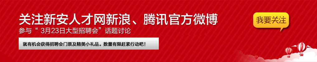| 鏂板畨瀹㈡湇锛鐜板湪寮濮嬪叧娉ㄦ柊瀹変汉鎵嶇綉鏂版氮銆佽吘璁畼鏂瑰井鍗氾紝鍙備笌鏈鎷涜仒浼氱殑璇濋浜掑姩锛屽嵆鏈夋満浼氳幏寰楁嫑鑱樹細鍏ュ満闂ㄧエ銆 |
